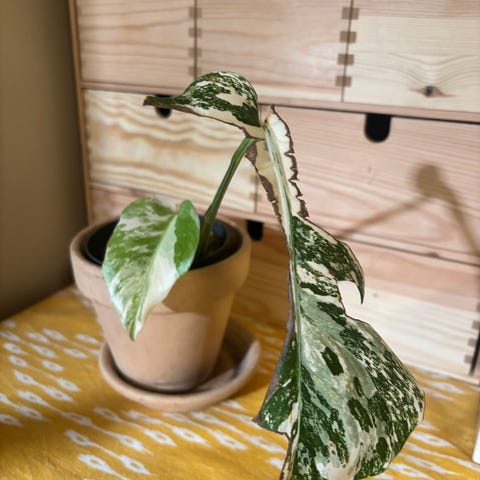 Har delt opp en større plante og selger stiklinger grunnet for lite plass og lys, derav noe tørket og brunt på bladene som er klippet bort. Alle stiklinger har godt anlegg med luftrøtter og nytt/nye vekstpunkt.