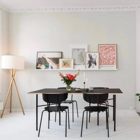 Hvit laminat, kryssfinerkant, hvite lakkerte stålben