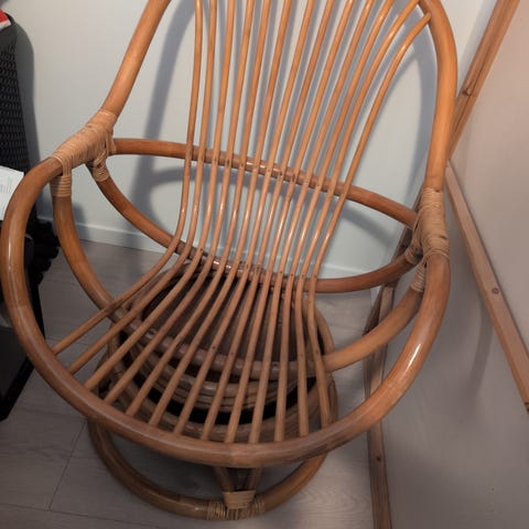 Rotting stol. Søt og svært lite brukt. De to fremre beina har «tråden» løsnet litt, trolig lett å fikse med litt lim, går ikke ut over bruken. Se bilder