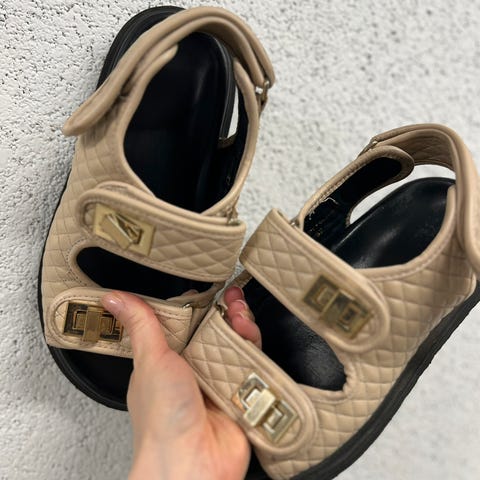 Beige sandaler med tett tå og kilehæl. Lite brukt.