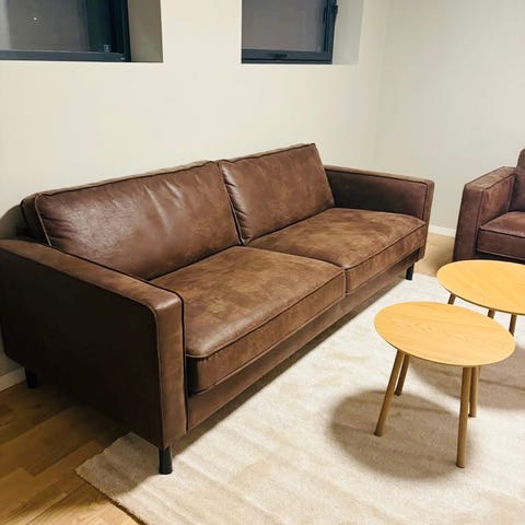 Pent brukt 3-seter i brunt. Kjøpt for noen år siden på Bohus. Ny pris 10000.