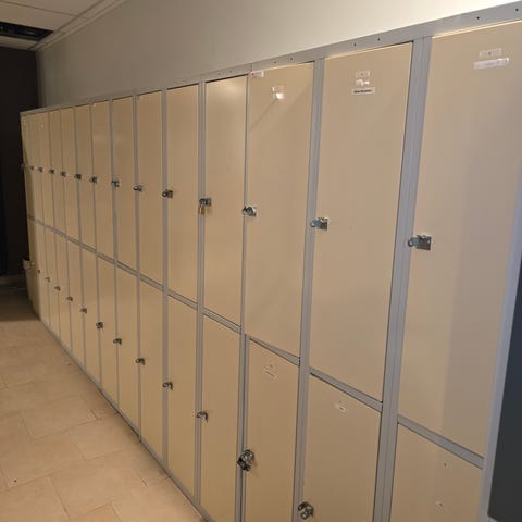 Selger totalt 9 solide garderobeskap i metall, tidligere brukt i garderobe/anlegg. Skapene er i brukt, men funksjonell stand og egner seg godt til: