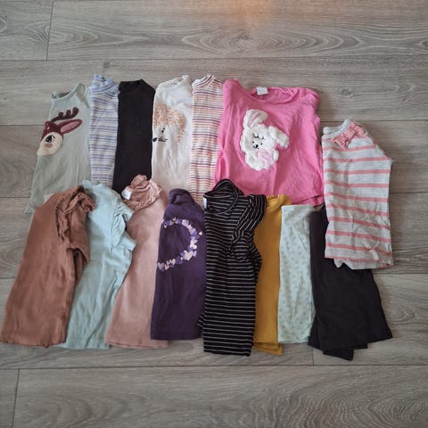 Klespakke jente 92, noe 86/92 og noen få 98.