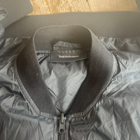 Selger en veldig fin peak perfomance vindjakke i lysegrå. Den er lite og pent brukt. Noe bruksmerker på overarmen.