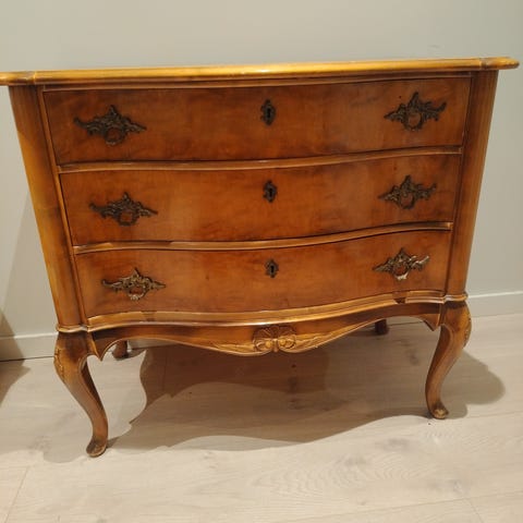 Nydelig, gammel (antikk?) klaffesekretær i heltre med vakker patina og solid kvalitet. Nøkkelbeslag i messing. Dette er et klassisk og tidløst møbel som fungerer både som skrivepult og oppbevaring. Antagelig fra tidlig 1900-tallet, eller nærmere midten.