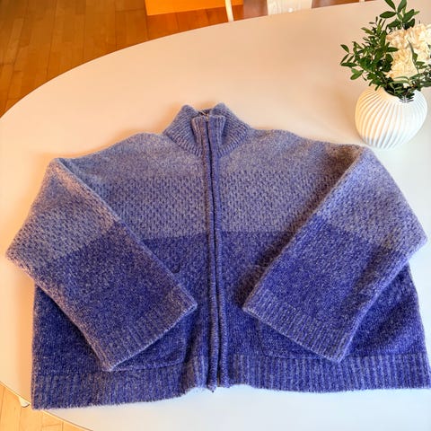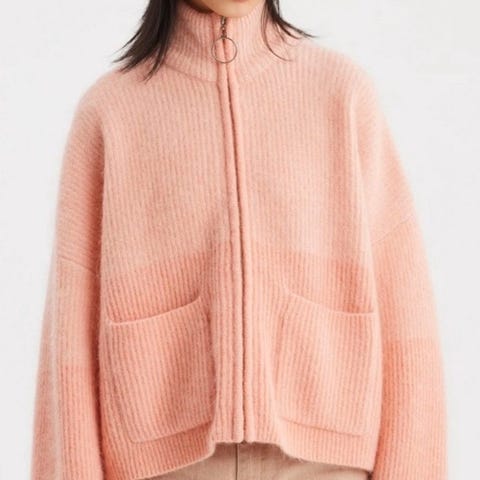 Pent brukt cardigan fra Holzweiler i to forskjellige rosanyanser. Veldig varm og god kvalitet. Selges da den brukes for lite! Nypris ca. 4500