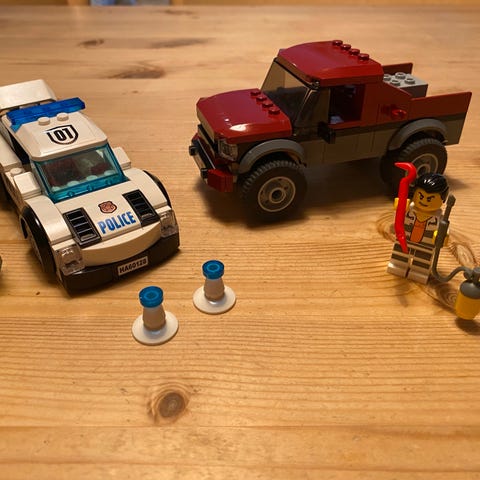 LEGO City Politi lastebil med tilhenger inkludert flere tilbehør som motorsykkel, politibil, og minifigurer. Settet inneholder også to hunder og diverse utstyr for politiets operasjoner. Passer for barn og samlere. Alle dører kan åpnes og ingenting er ødelagt. Kommer med to Politi figurer og to hunder. Det kommer dessverre ikke med noe boks eller manuell. Kan sende flere bilder ved bud. Pris kan diskuteres, men varen må hentes. Det er bare å ta kontakt, vis man har noen spørsmål.