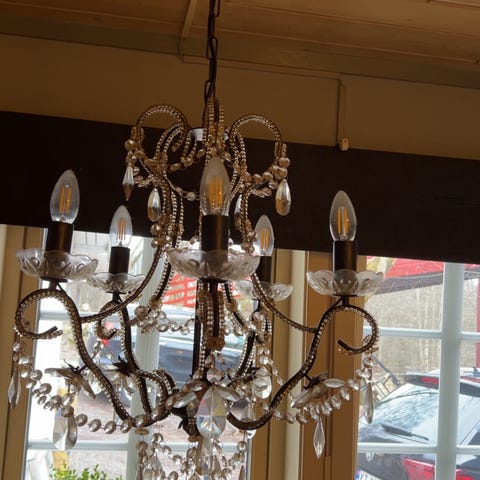 Gir bort en antikk lysekrone laget i tre. Lysekronen er en del av et arveoppgjør. Den er ikke testet, og teknisk stand er derfor ukjent. Den gis bort som den er, men muligens en enkel fiks for de med litt teknisk kunnskap.