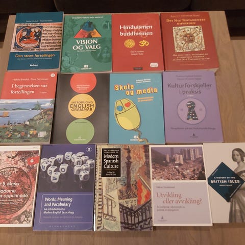 Selger pensumbøker for engelsk. Othello, Shakespeare har noen markeringer i seg. Samme gjelder the Norton Anthology of Poetry (6th edt.) American Government (12th edt) , Jilson er nesten ikke brukt! Ingen markeringer.