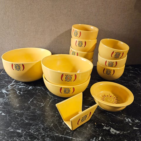 Mål 24 cm diameter, 9 cm høy – ideell til frukt, salat eller snacks. Tåler oppvaskmaskin, ovn og mikrobølgeovn. Som ny uten riper eller bruk.