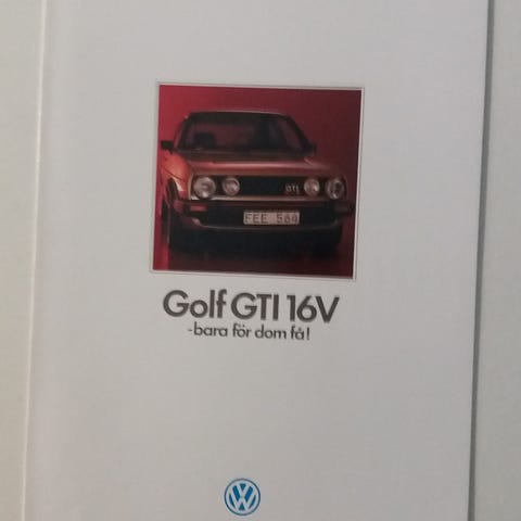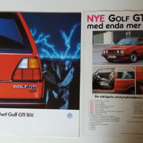 Flott ubrukt VW Golf GTI 16 V og Golf GTI brosjyre selges kr 1000,- inklusiv porto.