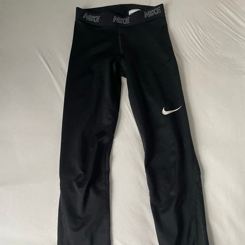 Treningstights fra NIKE selges. Den har lomme bak på rumpa/korsryggen, knyting i livet og detaljer med refleks på sidene. Passer fint til løping ute da den er litt tykkelse på.