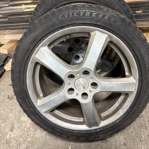 Dette er piggdekk, men mestepsrten av pigg er enten borte eller godt slitt ned.