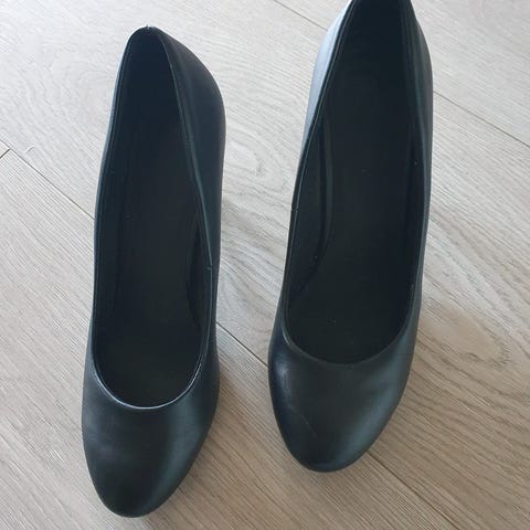 Din sko m3d høye hæler i størrelse 37 med svart farge. Skoene har en klassisk design med høye hæler, egnet for formelle anledninger eller hverdagsbruk.