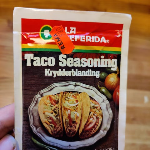 4 ulike krydder selges. Alle er økologiske. Tacokrydder, malt spisskummen, tomatpulver og timian. 😄