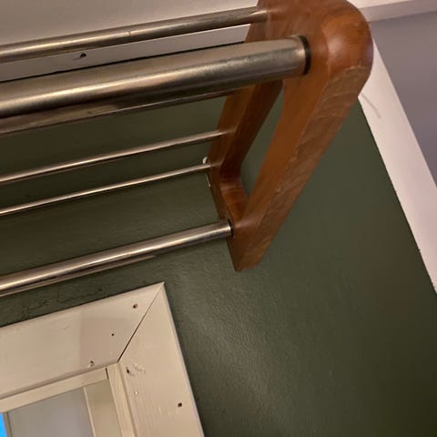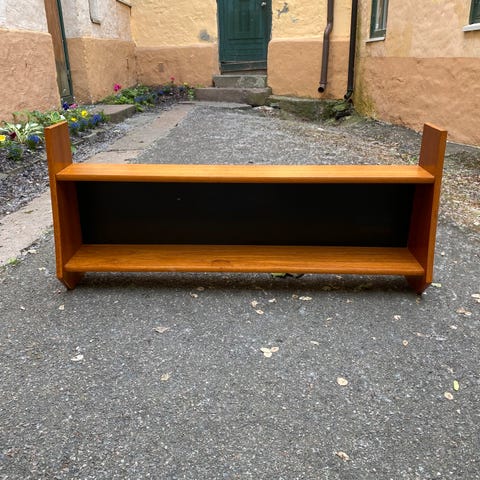 2 hyller selges 200,- pr. stk. - en i teak (95 cm bred) og den andre (100cm bred) lakkert og i teak-utførelse.