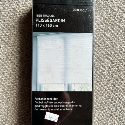 Fabio Opp-ned trådløs plisségardin i hvit farge med målene 160x160 cm. Gardinen er designet for enkel montering uten ledninger og gir mulighet for justering både fra toppen og bunnen.