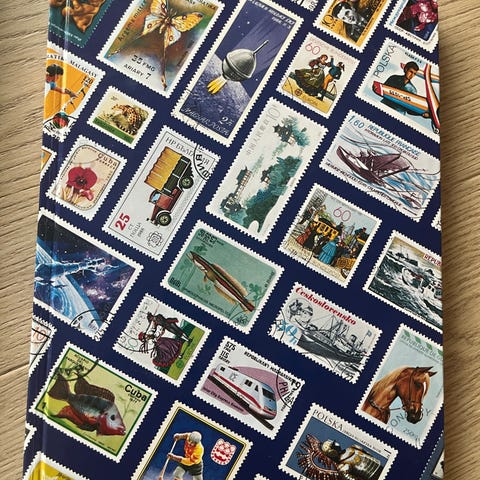 Frimerkene ligger tettpakket i en lett liten eske. Har ikke telt merkene men antar at det er flere hundre. Esken med merkene veier 223g.