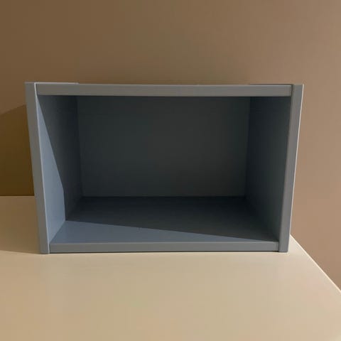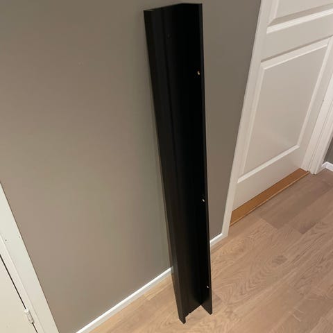 Smal, svart hylle gis bort mot henting. Noen skader, kan sikkert males over. Hentes i Hønefoss.