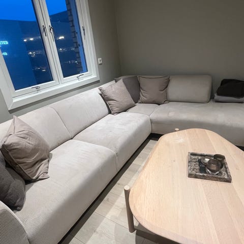 Copenhagen L-Sofa Fløyel med sjeselong på høyre (165cm fra rygg). God kvalitet