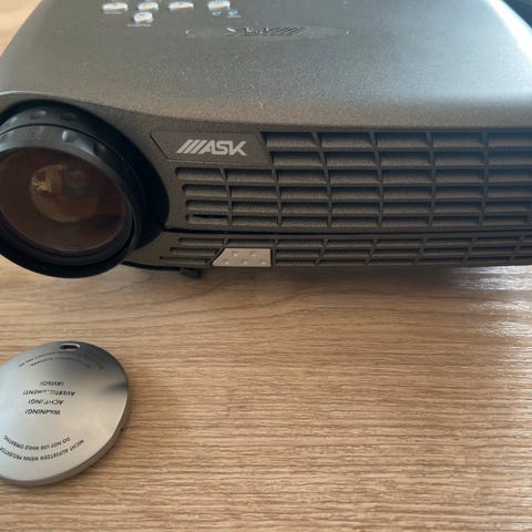 Prosjektoren fungerer som den skal. Denne har vi hatt mye glede av, men nå har vi bygget om og har ikke noe sted å ha den. Vi har kjørt den rett på hvit vegg eller en hvit rullegardin.