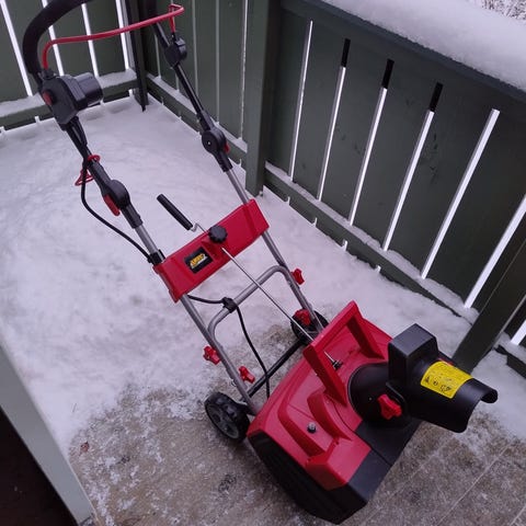 Enkel snøfreser for moderate snømengder. Må koples til stikkontakt 230 volt. Må hentes i Horten.