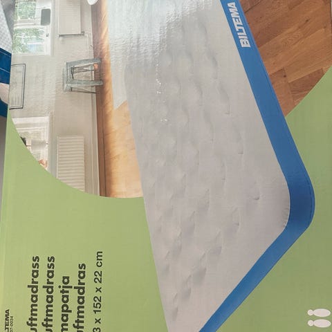 Selger denne luftmadrassen med pumpe, siden den ikke blir nok brukt.