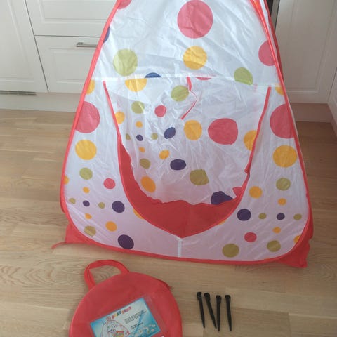 I tillegg kommer det med teltplugger så det ikke blåser bort.