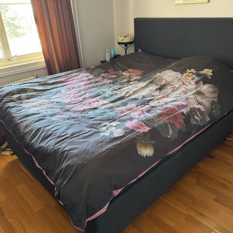 Sengen er kjøpt for ca. 42 000 kr, men selges nå for 34000 kr på grunn av flytting til USA.