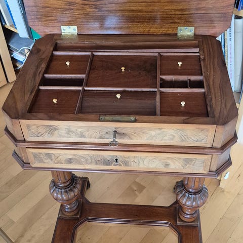 Forholdsvis smal bredde som gjør dem egnet innunder eldre skrivebord. Selges samlet kr. 800,-.