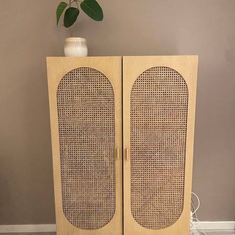 Vi kjøpte dette fine vitrineskapet til å fylle med gaver fra bryllupet. Skapet rakk å bli skrudd opp og fylt før vi fant ut at vi ville flytte. Det ble derfor tømt og satt på lager. Ikke lengre behov for det. Nesten ikke brukt,