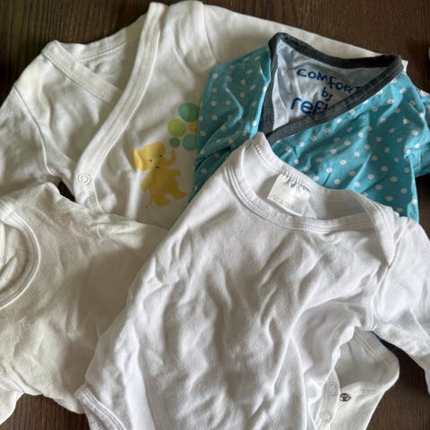 Selger en pent brukt klespakke i størrelse 56 som passer til begge kjønn fra merker som Newbie, H&M, Tiny One og en bukse i merinoull fra Porlarn O Pyret 🩵🩷
