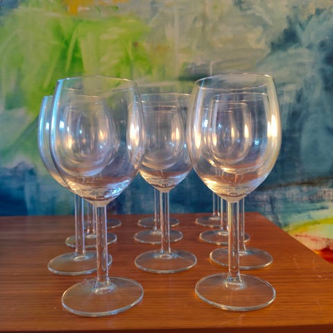 Vinglass brukt i cirka 5 år gis bort mot henting. Er 3 hvitvinsglass og 5 rødvinsglass (altså litt forskjellig høyde mellom typene).