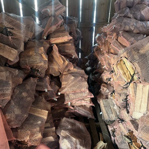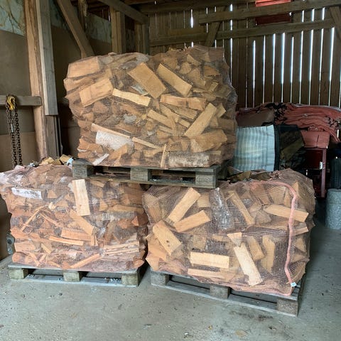 Ved pakket i sekker, klar til bruk. Egnet for oppvarming og peisfyring.