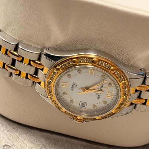 Urskiven er i perlemor med romertall og 8 diamanter💎🤩 Pen og klassisk klokke som viser igjen✨