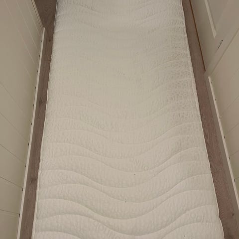 Brukt av en gjest i 5 dager. God kvalitet, behagelig å ligge på og lufta holder seg fint .