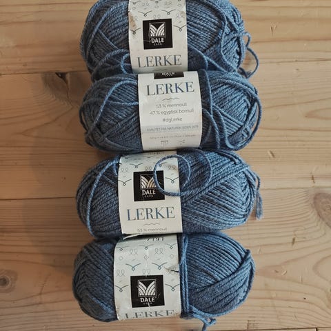 9 stk. Dale Lille Lerke garn selges samlet. Se bilde for fargene. og innfarging. Lik innfarging på alle. Jeg kan sende for kr 70,- med forhåndsbetaling på Vipps, eller med fiks ferdig.
