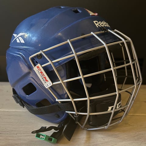 Reebok 1K S ishockeyhjelm i blå farge. Hjelmen er designet for ishockey og bandy og har størrelse 50-57 cm. Denne hjelmen har solid gitter og passer fint for de yngste.