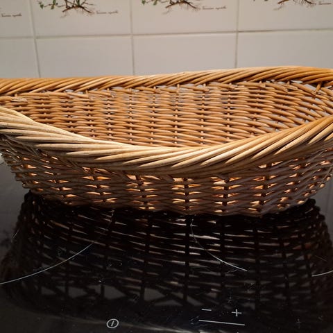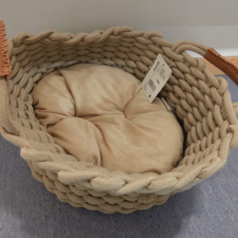 Nydelig flettet kurv som aldri blir brukt. Perfekt til en liten hund, katt eller flere kattunger. Blir enda bedre med en myk saueskinn teppe/pute.