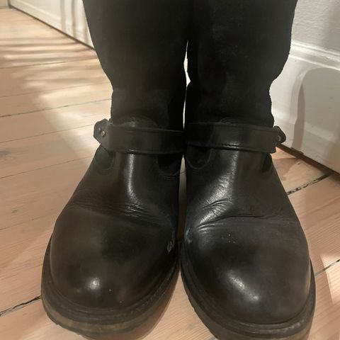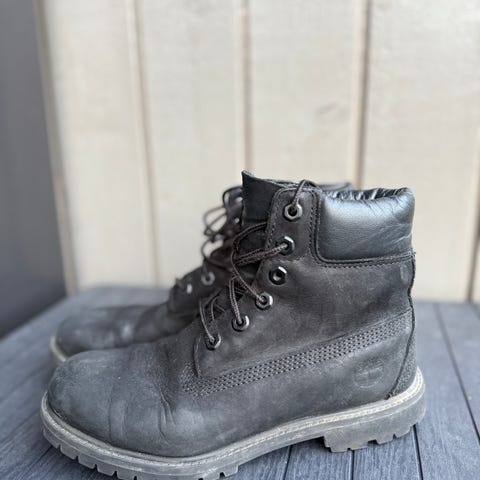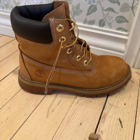 Timberland støvler i størrelse 39, laget av brunt skinn. Støvlene har en robust såle og elastiske paneler på sidene for enkel på- og avkledning. Egnet for bruk i ulike værforhold og aktiviteter.