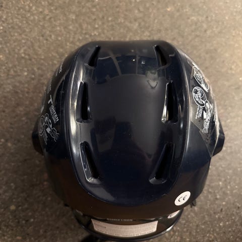 Bauer BH4500S ishockeyhjelm i hvit farge med gitter. Hjelmen er designet for ishockey og bandy og har ventilasjonshull for lufting. Den er produsert i Thailand og har justerbare stropper for bedre passform. Tror dette er størrelse S,