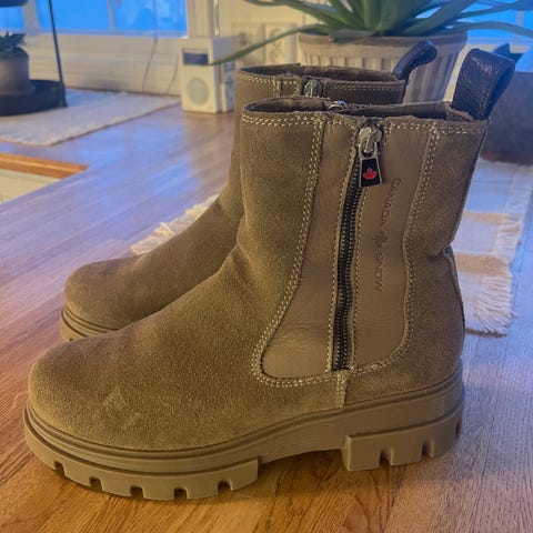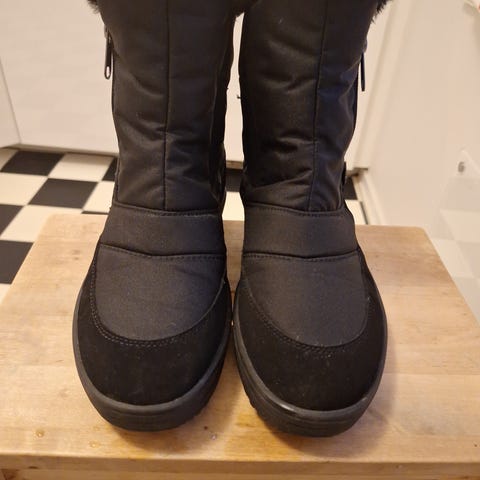 Vinterstøvler med ullfor fra Canada Snow. Brukt en sesong. De har blitt litt stygge i skinnet grunnet snø, men det har ingen ting å si for funksjon. Varme og gode, med god såle.