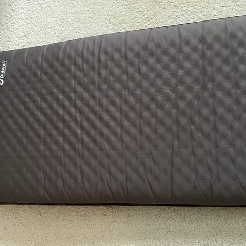 Urberg selvoppblåsbart liggeunderlag for barn. Ca. 118 cm langt. Det blåser seg noe opp selv, men det trengs litt innblåsing i tillegg for at det skal fylles helt. Underlaget bli ca. 3 cm tykt. Pose følger med. Bildet er tatt når underlaget er tømt for luft.