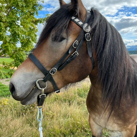 Jakob er en 7 år gammel lyngshest som elsker å jobbe! Både godt innridd og godt påbegynt innkjøring. Han trenger en rolig rytter som er litt tøff da han kan bli litt ivrig på tur og i sprang. Kan være litt skvetten alene på tur.