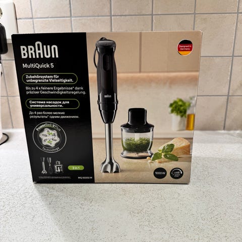 Akkurat slik: https://www.kitchn.no/kjokken/kjokkenapparater/stavmiksere/obh-nordica-super-mix-stavmikser/