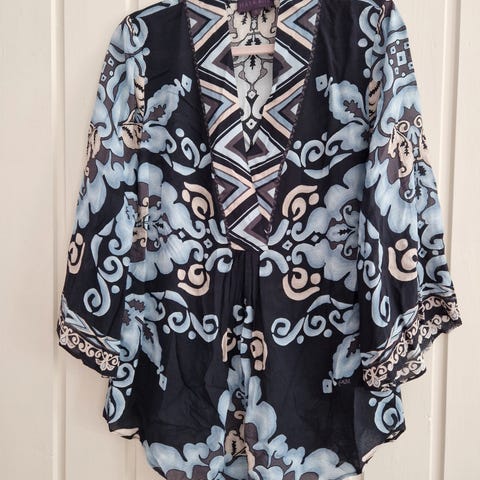 Hale Bob bluse i flerfarget mønster, laget av 100% silke. Størrelse XS off shoulder. Litt stor i størrelsen. Passer str S og M. Kun brukt et par ganger