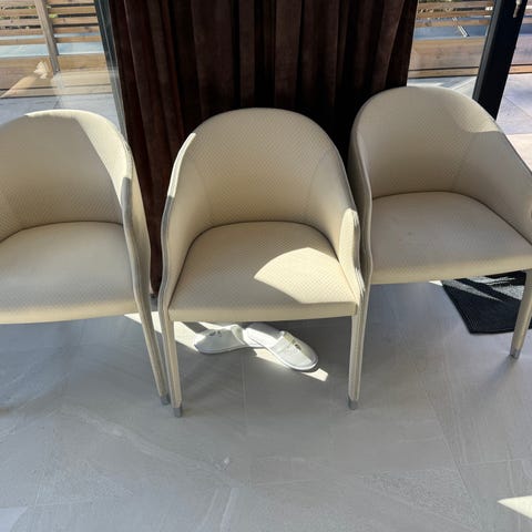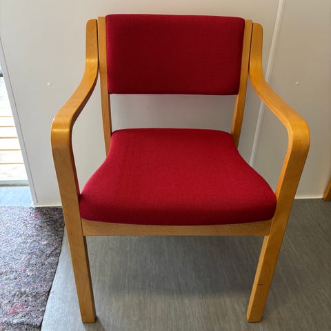 Konferansestoler fra AJ-produkter. Gode stoler i god kvalitet. Hele og fine i trekket, god stabilitet og sittekomfort. 3 stk i lilla, 2 stk i grå.