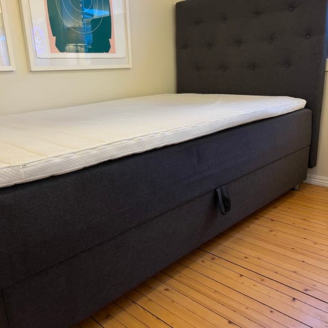 Helt ny uåpnet magasinseng fra Bohus selges da vi ikke får den opp i 2 etasje grunnet for lite plass i trappa. Bohus tar den ikke tilbake fordi forpakningen ble åpnet siden den var pakket sammen med overmadrass. Vi hadde håpet at hvis vi tar de hver for seg så får vi plass i trappa. Det skjedde ikke dessverre🫤Nypris for denne er 10999kr så du får en bra deal for en ny seng😉.