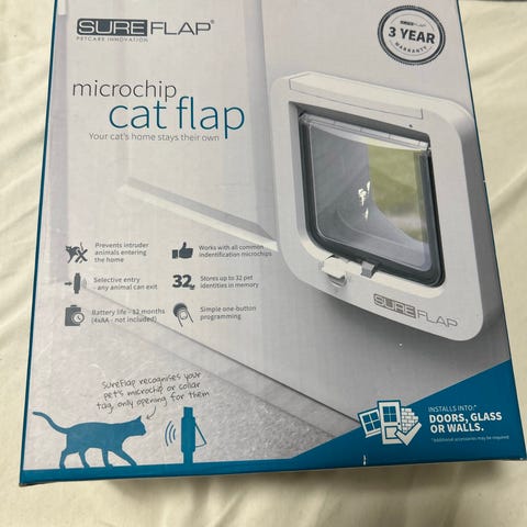 Katteluke på 14 x 14 cm selges kr 600. Fungerer som den skal.