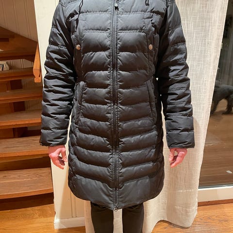 Helly Hansen varm jakke i størrelse L for kvinner. Jakken er svart og laget av polyester. Den har hette med avtagbart «pelskant». Hetta kan reguleres i str -se bilde. To glidelåslommer foran. Materialet er oppgitt som 100% polyester.